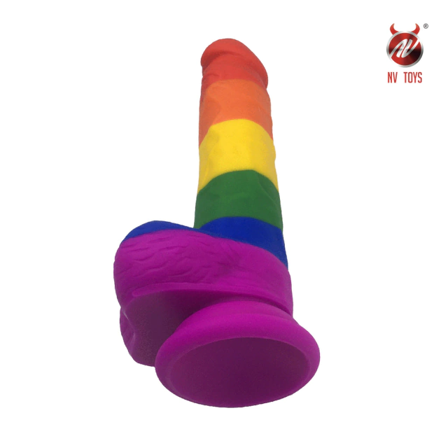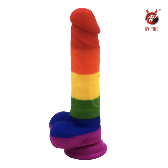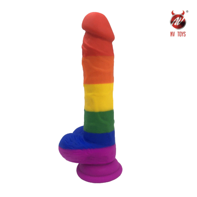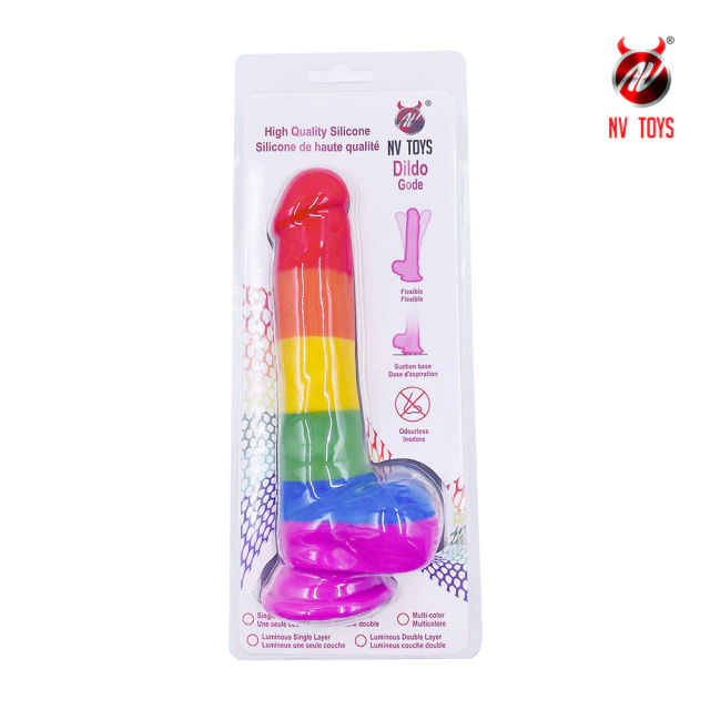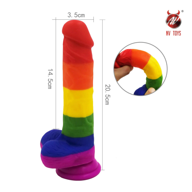 Pênis Realístico Arco-íris Material Super Macio, Glande Saltada e Ventosa Resistente - PE107